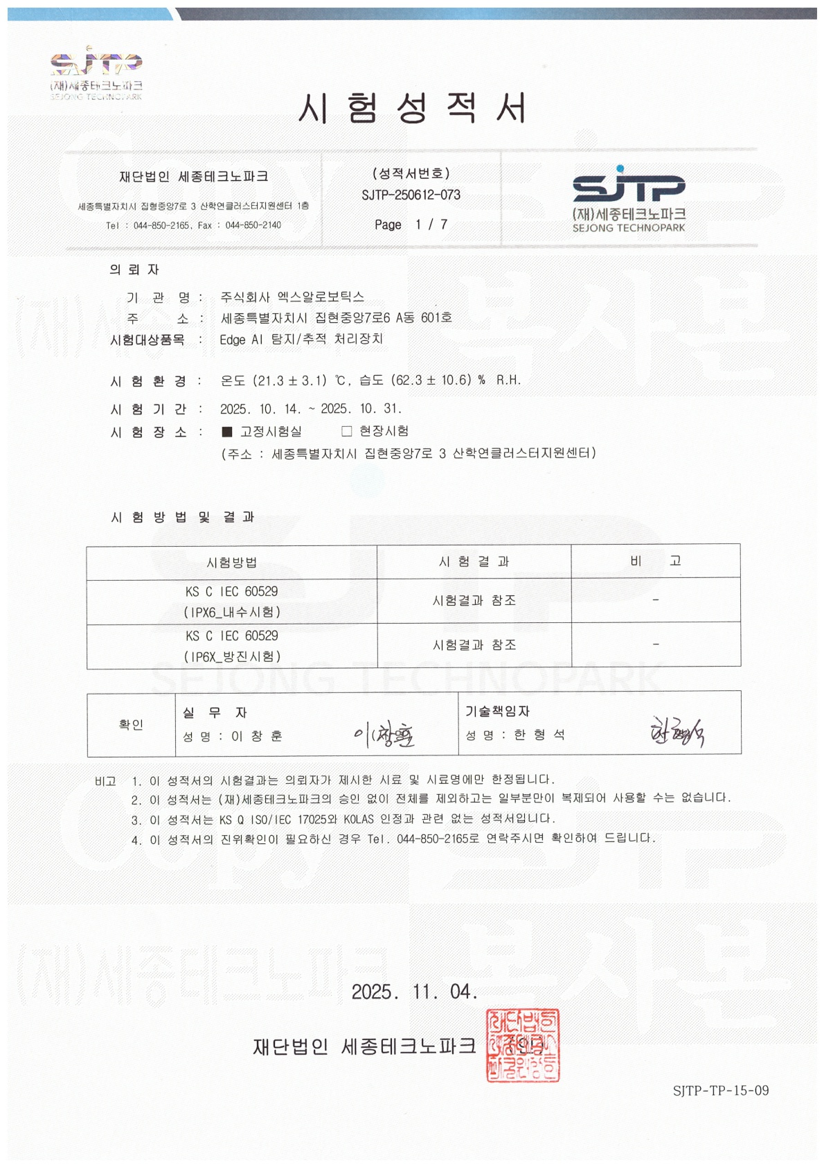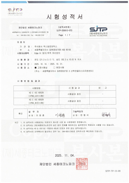 [Edge AI 탐지/추적 처리장치] 방진방수시험성적서