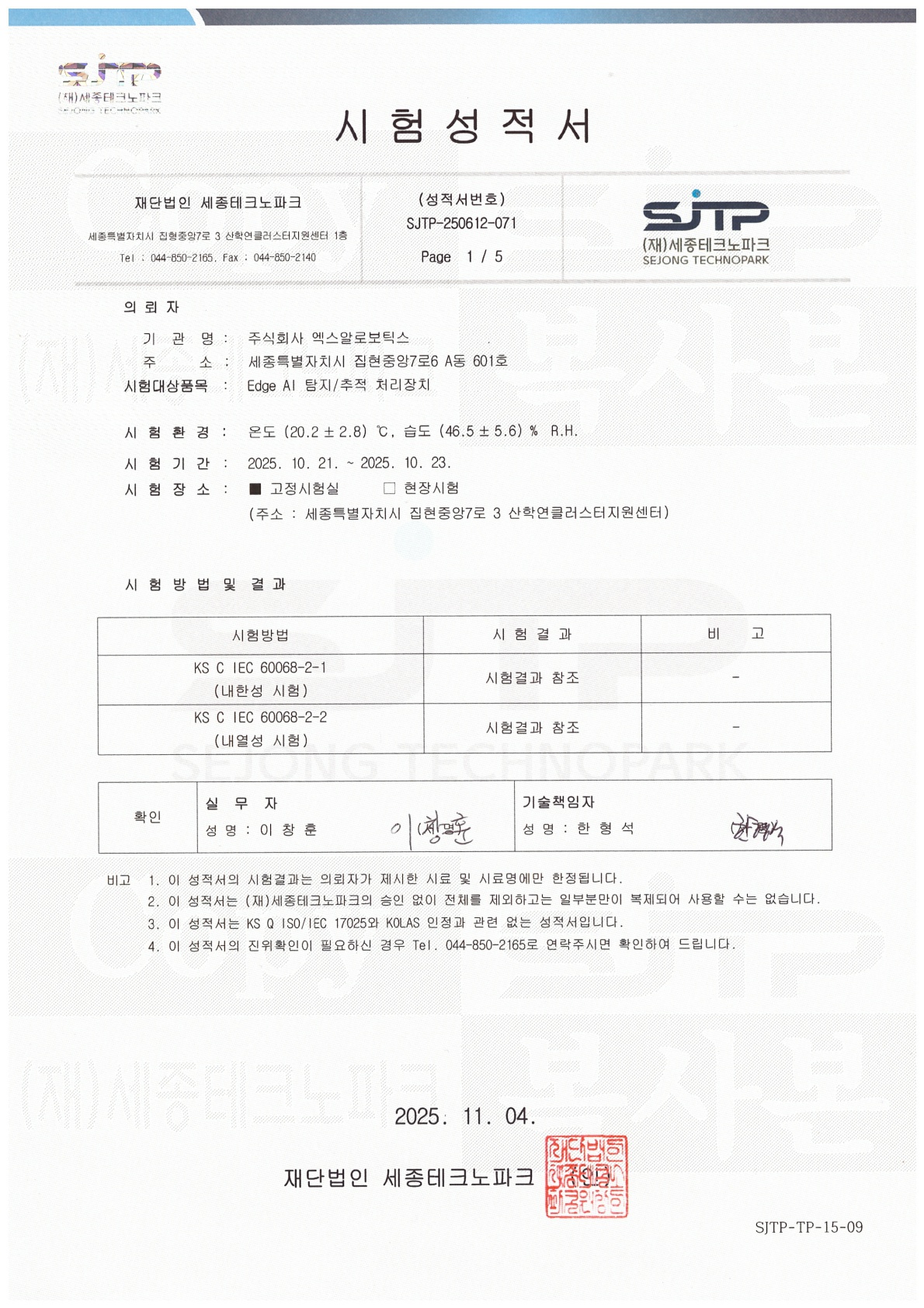 [Edge AI 탐지/추적 처리장치] 내한내열성시험성적서