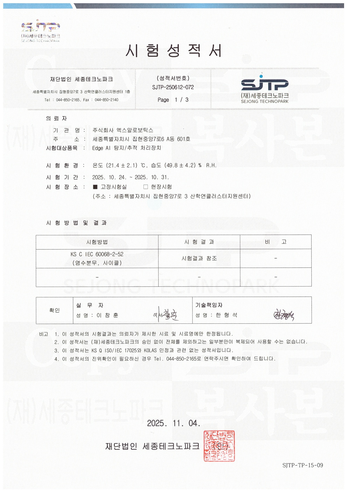 [Edge AI 탐지/추적 처리장치] 염수분무시험성적서