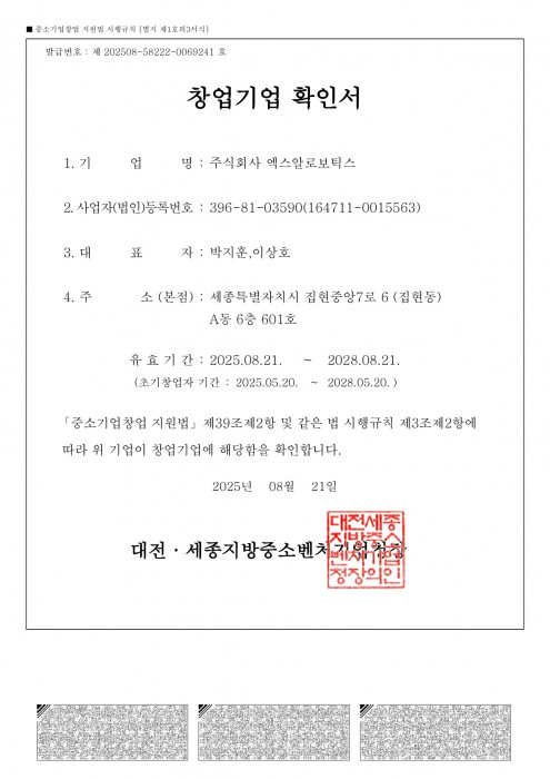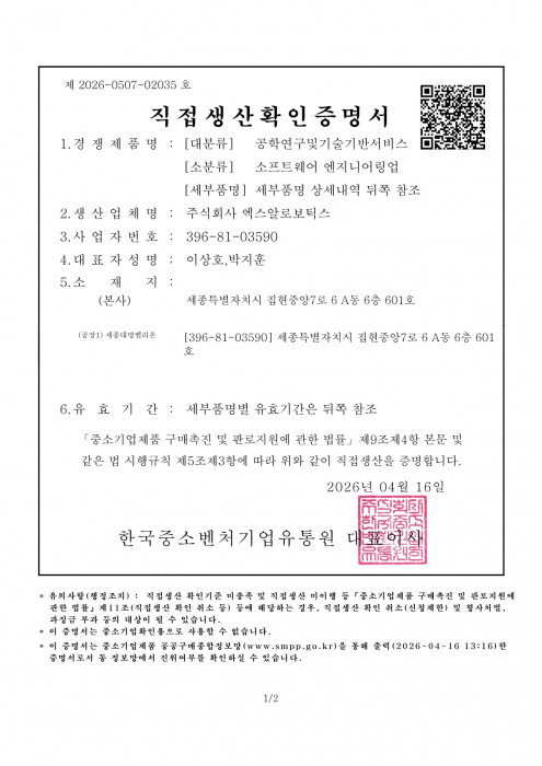 엑스알로보틱스_사업자등록증