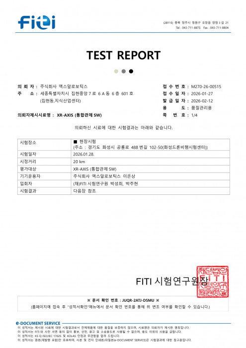 [통합운용소프트웨어] 대드론·UAM 관제 소프트웨어 공인인증시험성적서